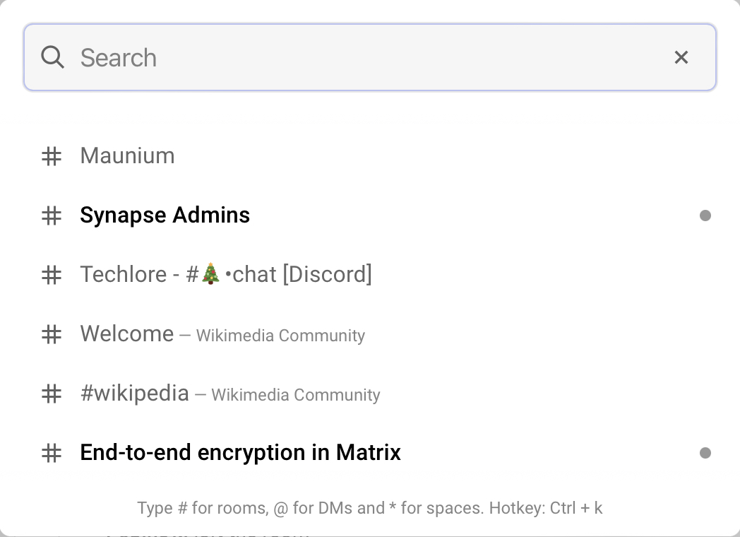I have been working on a little project over the last week: nheko-krunner. nheko-krunner is a KRunner plugin that loads rooms from nheko, displays them to the user, and allows the user to activate said rooms. How does it do this? Well, I've also been creating a D-Bus API for nheko! This code has not been merged yet, but once it is, you will be able to create your own plugins that access nheko via D-Bus!