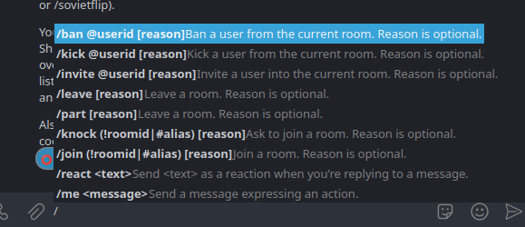 Nheko now also shows a completer for /commands (stuff like /me, /react or /sovietflip).