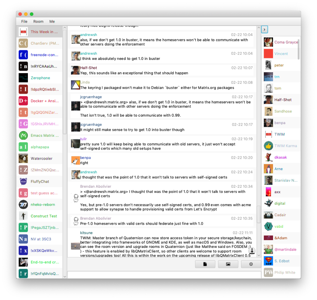 Also, you can see the room version and upgrade rooms in Quaternion (just like Matthew said on FOSDEM ;) ) - this feature is enabled by libQMatrixClient, so other clients are welcome to support room versions/upgrades too!All this is within the work on the upcoming release of libQMatrixClient 0.5 and Quaternion 0.0.9.4 - stay tuned!