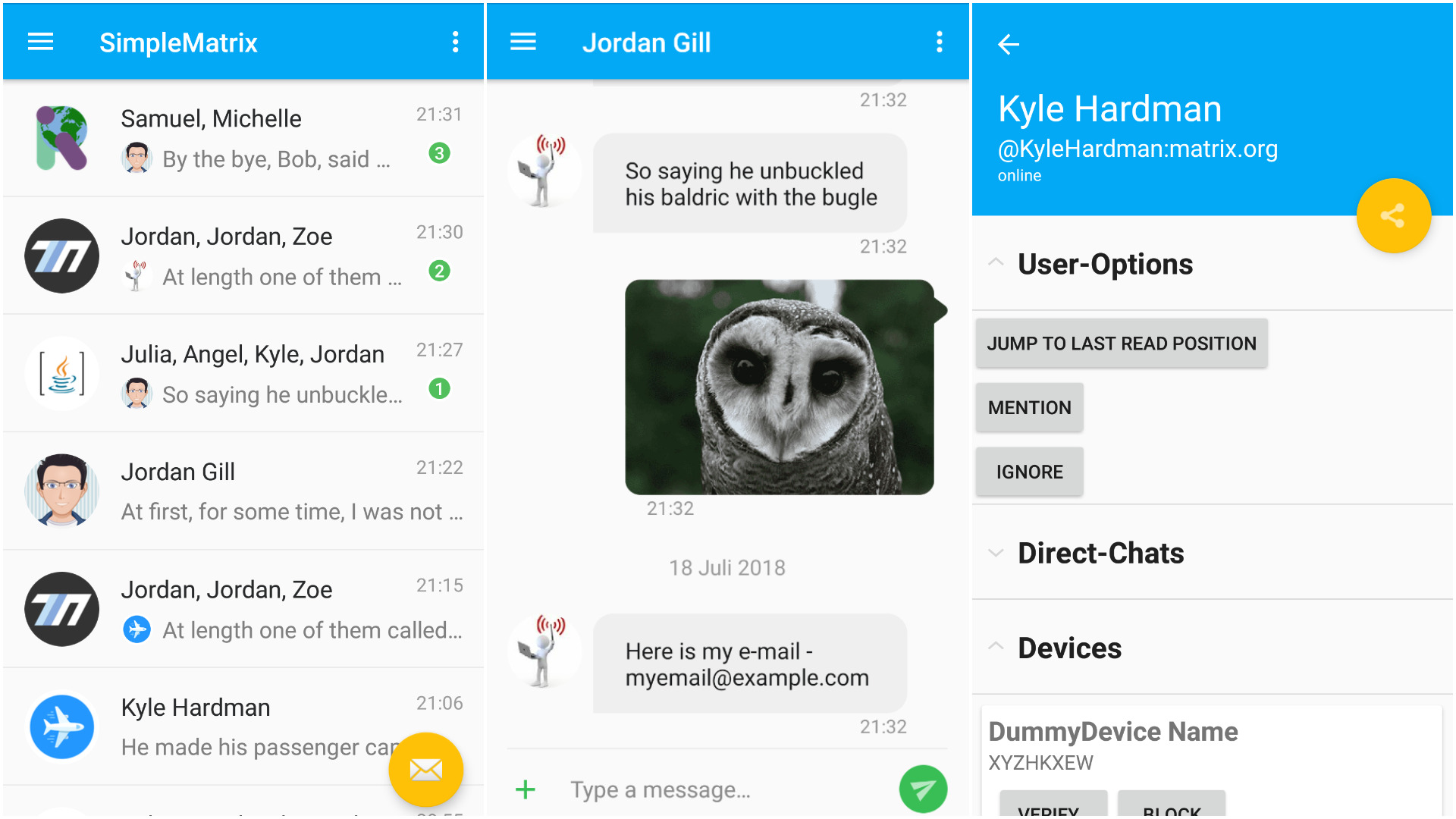 SimpleMatrix is my approach on making an Android App that is more easy to use than the official one in Terms of UX and UI. Planned is also a Android Wear App within this App for mostly Notifications.
