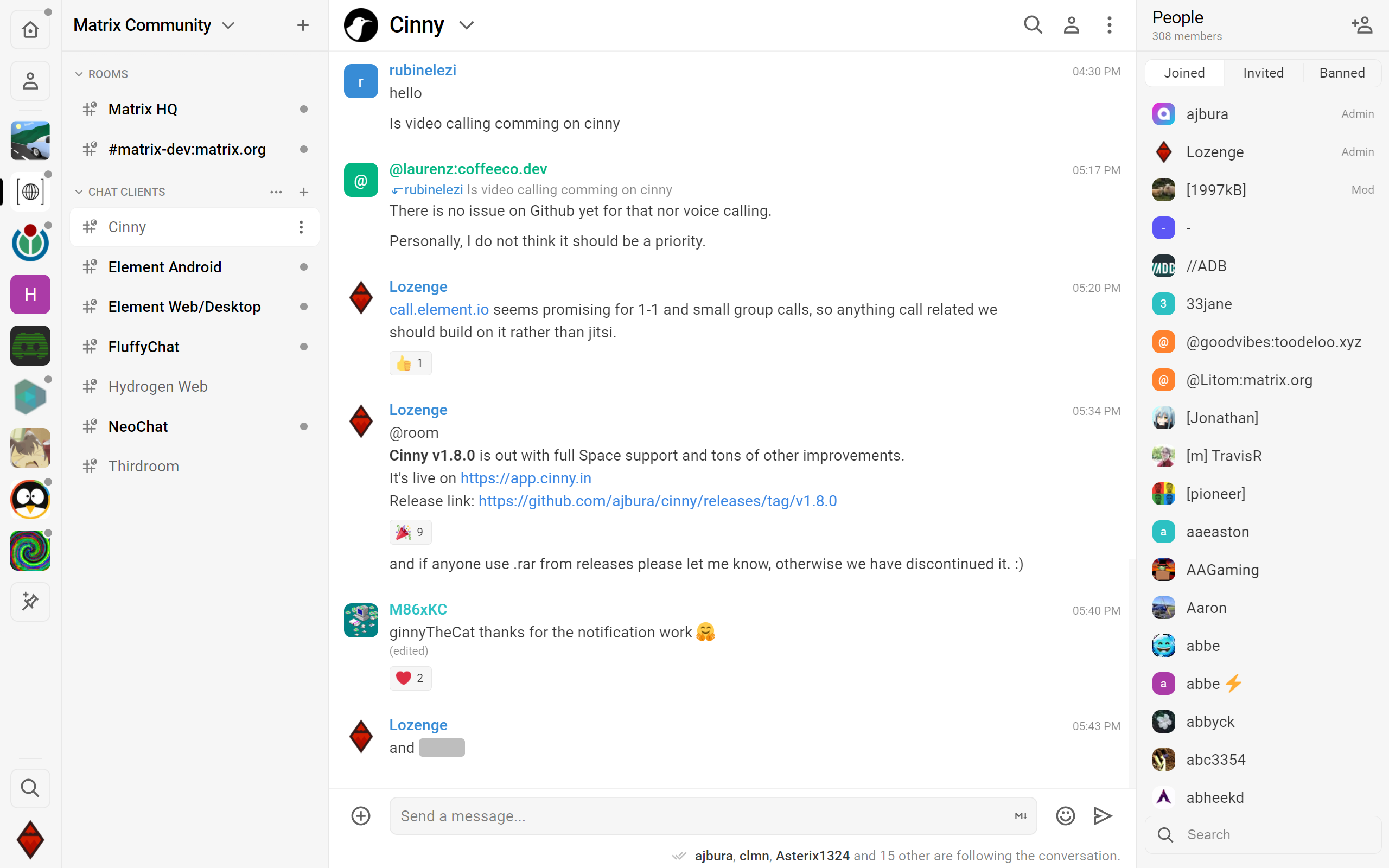 Trixnity 2.0.0-RC1 has been released. This release candidate contains many breaking changes due to a large refactoring, which allows us to share a lot code between server and client implementations of the Matrix APIs. Yes, that means Trixnity can be used to implement a matrix server! We also made some progress to make the client module (with all the high level logic) multiplaform. This is the only module, which does not support Kotlin/Native and Kotlin/JS yet. There are many other features (like client-side notifications!), which has been added. See the changelog for more details: