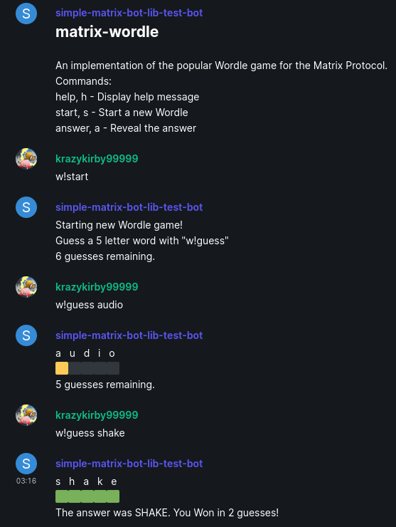 simplematrixbotlib is an easy to use bot library for the Matrix ecosystem written in Python and based on matrix-nio.