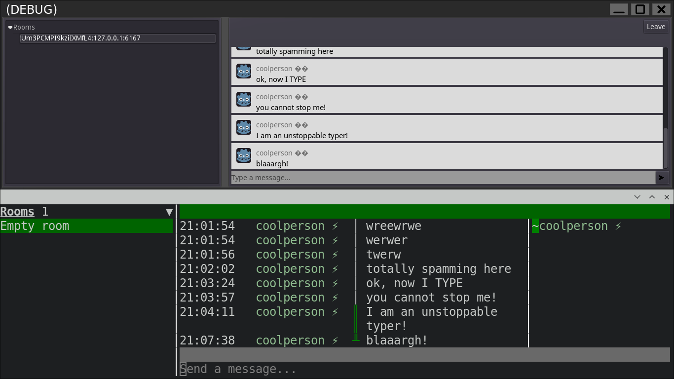 The most useful feature this week is having the ability to open multiple connections to the same network. This can be used to plumb channels with a secondary connection while using the bridge as yourself with the main one. You can also STAHP long pastes from being actually sent out completely to a channel if you weren't careful enough on Matrix side.